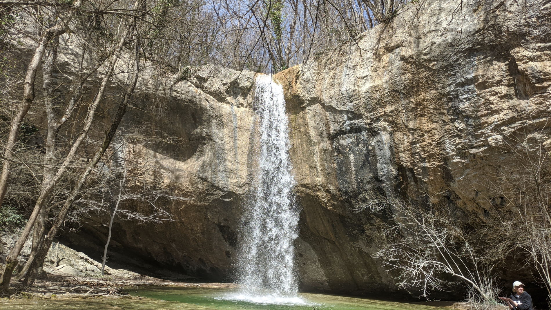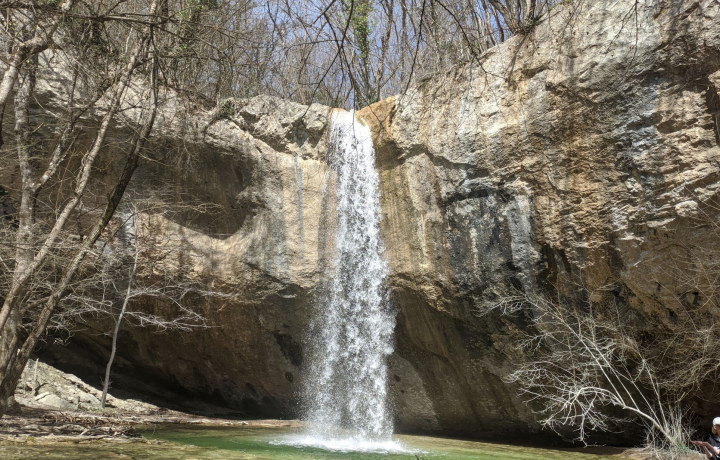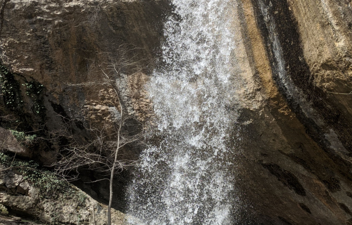 Путь к водопаду стартует от села Передовое, сюда группу от точки сбора доставит комфортабельный автобус. Вас будут окружать горы, а вдали виднеться большое водохранилище. По тенистой лесной тропе мы будем идти вдоль шумной реки, иногда пересекая ее по деревянным мостикам и достигнем водопада Козырек. Его можно обойти и оказаться между водяной завесой и скалой. У подножья скалы от падающего потока воды образовалось круглое озеро изумрудного цвета. Ручей и водопад можно увидеть зимой, весной или летом после обильных дождей.