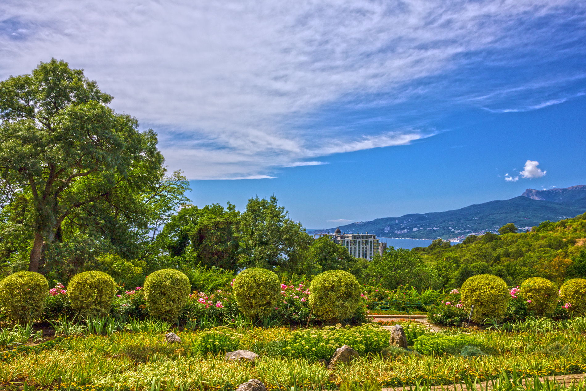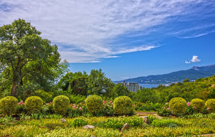 Удивительные виды. Со смотровых площадок сада открываются захватывающие панорамы на Черное море и Ялтинские горы.
