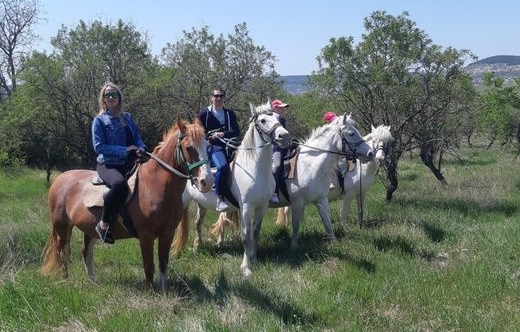 Среди разноцветия цветущих полей лошадки повезут вас по белой, точно нарисованной мелом, дороге. Минуя миндалевый сад, дорога пойдет в гору, углубляясь в богатый флорой крымский лес. Здесь вы вволю насладитесь запахом можжевельника и крымских сосен.