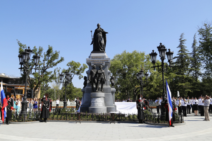 В 1890 году в Симферополе был торжественно открыт памятник Екатерине II, в эпоху которой полуостров стал российским. Простоял монумент всего два десятилетия — с приходом советской власти статуя императрицы была демонтирована и уничтожена. На смену ей появился памятник с молотобойцем, посвящённый освобождению Крыма, а затем это место украсила традиционная скульптура вождя пролетариата.
