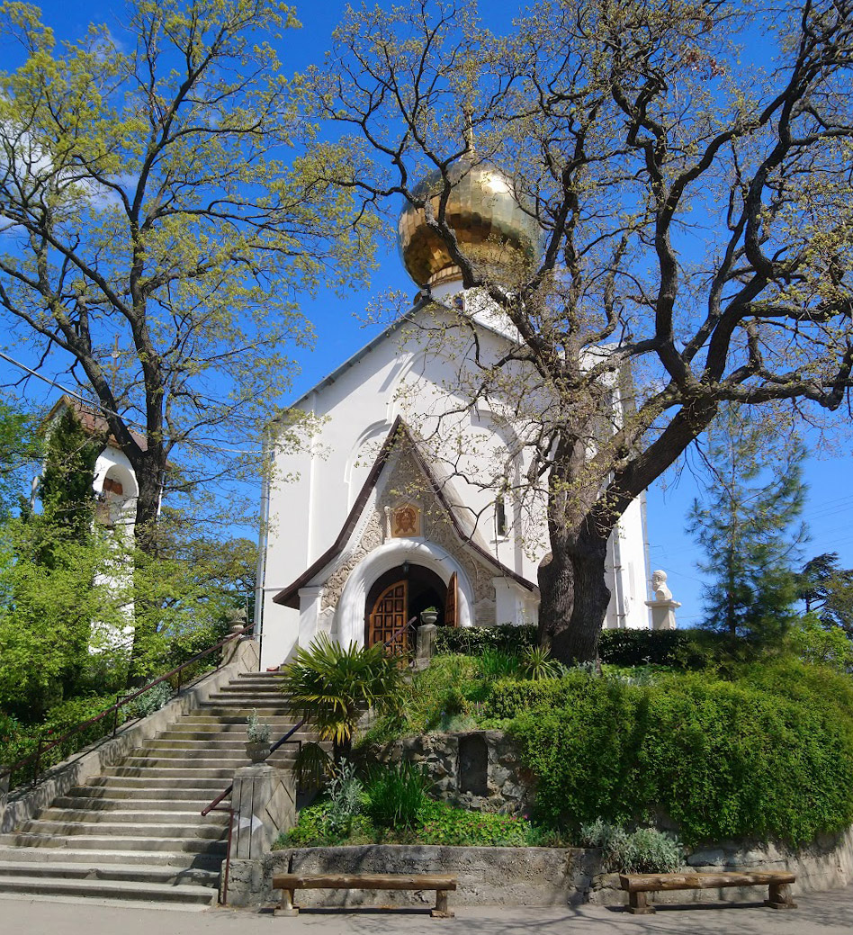 В 1837 году генерал-губернатор М. С. Воронцов инициировал возведение в Ялте пятикупольного каменного собора. Так называемый «екатерининский» стиль архитектуры собора – это причудливое сочетание пышности барокко со строгостью готики. Церковь Иоанна Златоуста больше напоминает английскую усадьбу, скрытую от посторонних глаз кипарисовой рощей. Только 45-метровая колокольня просматривается среди остроконечных деревьев. Во время войны церковь была полностью разрушена и восстановлена только к концу прошлого века. Интерьер полностью повторяет оригинальный – внутри всё украшено деревом и резьбой