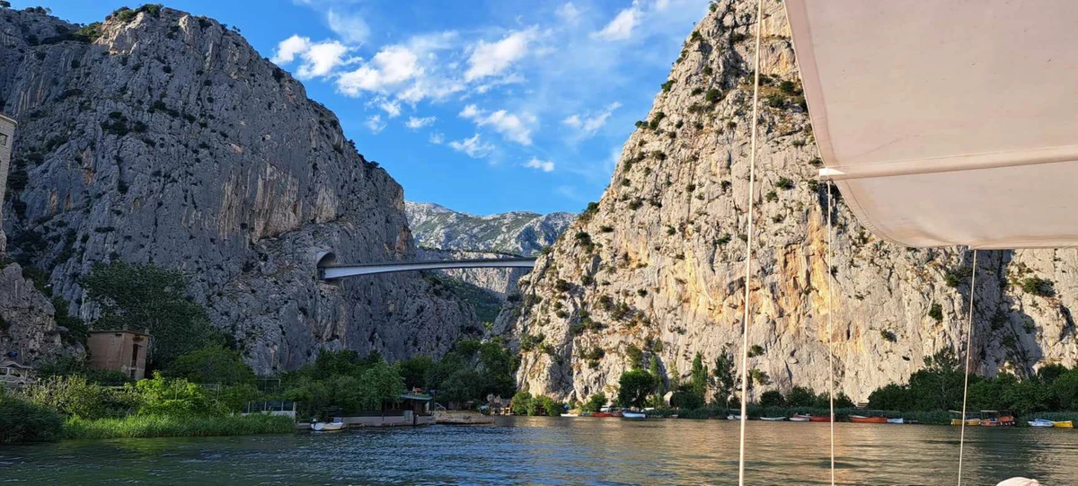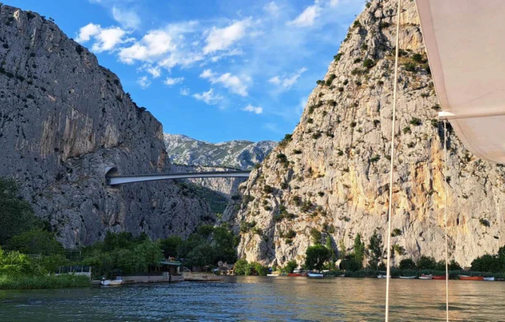 Из города мы отправимся к его живописным окрестностям: перед вами раскинутся пейзажи устья реки Цетины, которая завершает свой путь в скалистом каньоне и впадает в Адриатическое море. Самая красивая часть экскурсии: возможность покататься на моторной лодке по реке Цетине. Плавание по реке — это неповторимый сказочный опыт, в котором природа открывает вам всю свою красоту. Вы осмотрите места съемок фильма о Виннету, понаблюдаете за сплавляющимися лодками, увидите, как сверкает вода под лучами солнца.