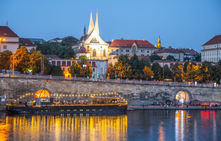 Поднимитесь на борт у причала между мостами Чеха и Штефаника — вас встретит хозяин, и начнётся ваш романтический круиз по центру Праги. Вы проплывёте мимо самых известных достопримечательностей, озарённых мягким вечерним светом: