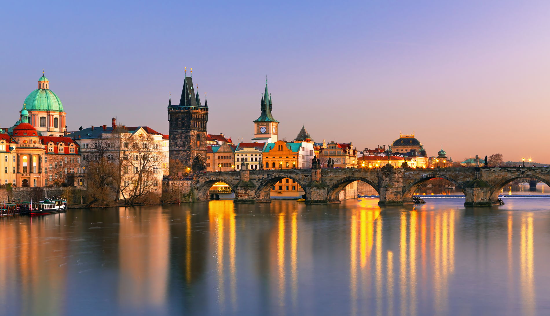Прага в вечернем сиянии — с воды и с ужином