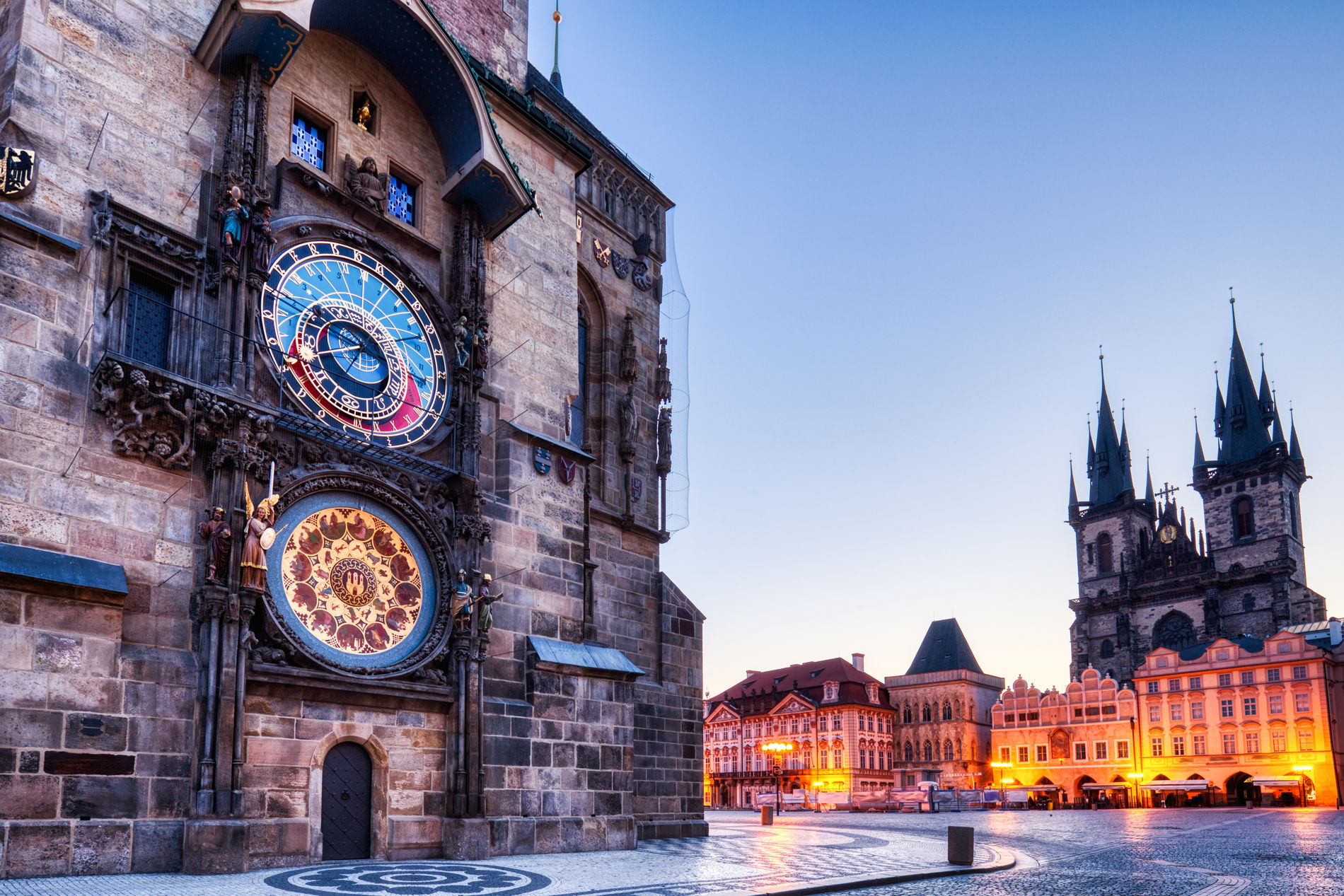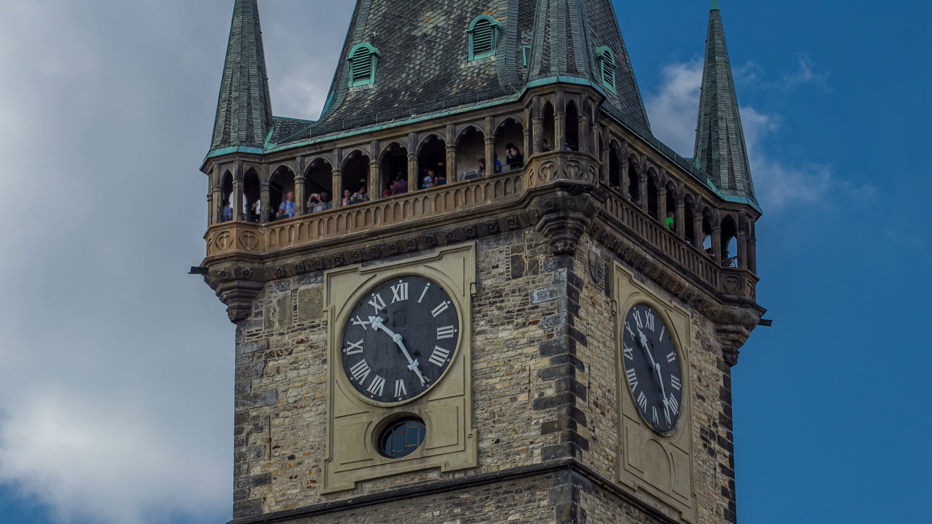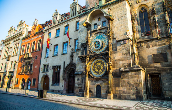 На башне установлены уникальные часы, где каждый час с 9:00 до 23:00 можно увидеть движение фигур двенадцати апостолов — одно из самых известных зрелищ в Праге.