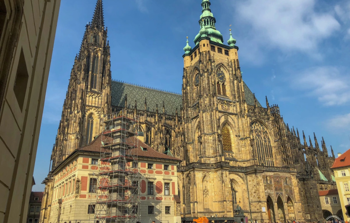 Завершим осмотр аутентичной части города Пражским Градом, где жили все чешские правители. Вы войдете через главный вход, заглянете во дворы и посетите собор св. Вита — шедевр готической архитектуры. Узнаете о королевских дворцах, храмах и первом чешском женском монастыре, а также о том, почему и когда появилось выражение «Злата Прага».