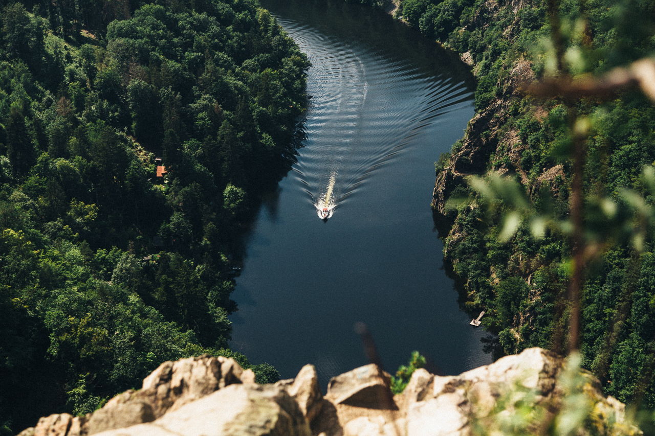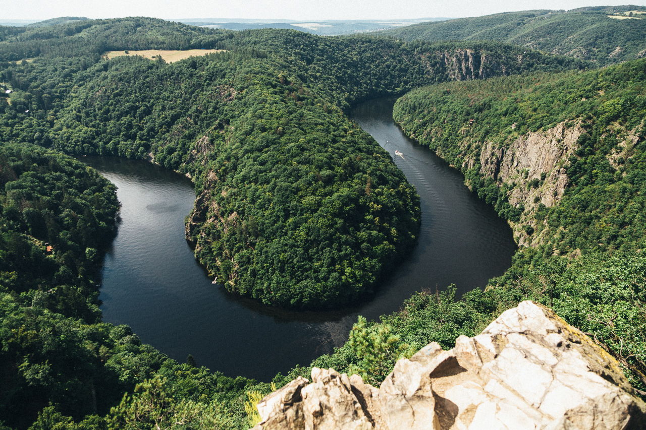 В Чехии много красивых мест, но с выглядки Май открывается удивительный вид на Влтаву: река идеально лежит в подкове, отпечатанной в скалах. Скалистые спуски и подъемы, панорамные виды, чистый воздух и богатая чешская природа: экскурсия на Выглядку Май - это чудесная прогулка с приключениями. Моя самая любимая часть экскурсии - пикник на скале, с видом на реку и густой лес. 🧡