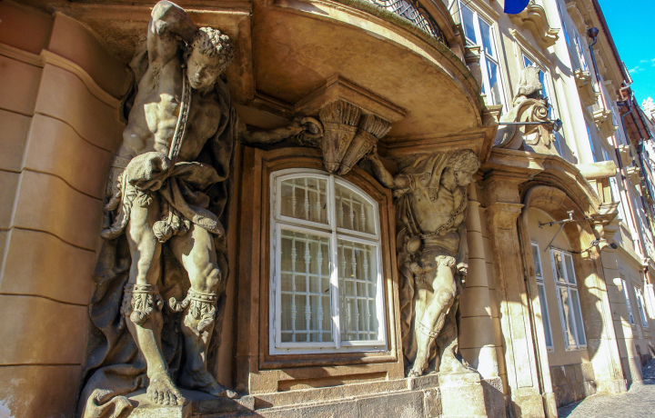Вы узнаете почему Морзиинский дворец ранее назывался домом «У мавра» и что означают надписи DIES и NOX на скульптурах дворца.