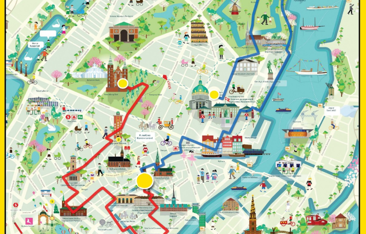 У экскурсии два маршрута, «красный» и «синий», которые проходят в разных частях города. Оба маршрута начинаются в самом центре города, на площади Хойбро, с которой началась история Копенгагена. Вы сами выбираете, по какому маршруту гулять: