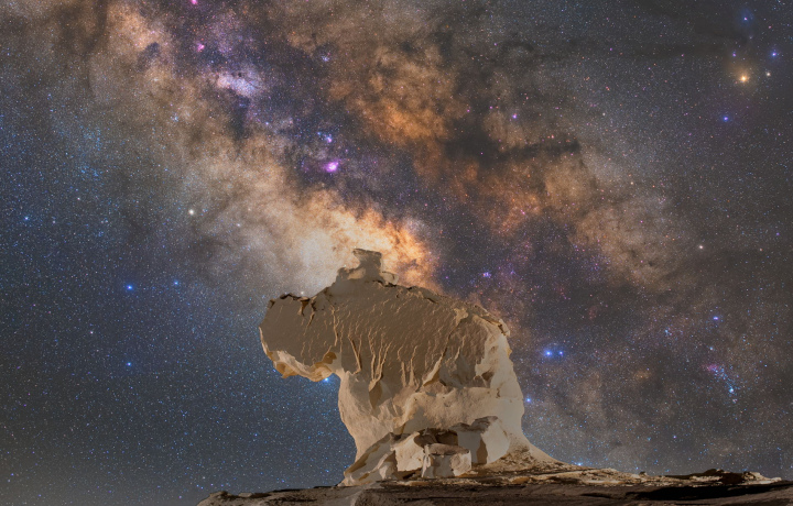 Древний и загадочный Большой Сфинкс соединил в себе черты нескольких существ. У него голова женщины, тело и лапы льва, хвост быка и крылья орла. Вытесанная из известнякового монолита мифическая фигура стоит перед пирамидой Хефрена в долине Гизы. Высота колосса — 20 метров, длина тела — 73 метра.