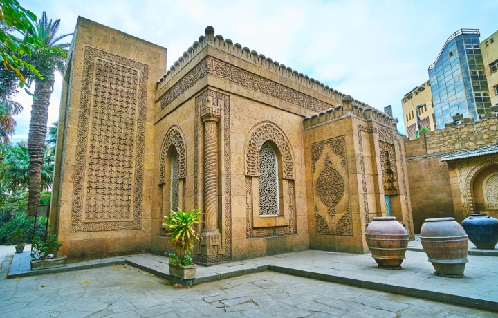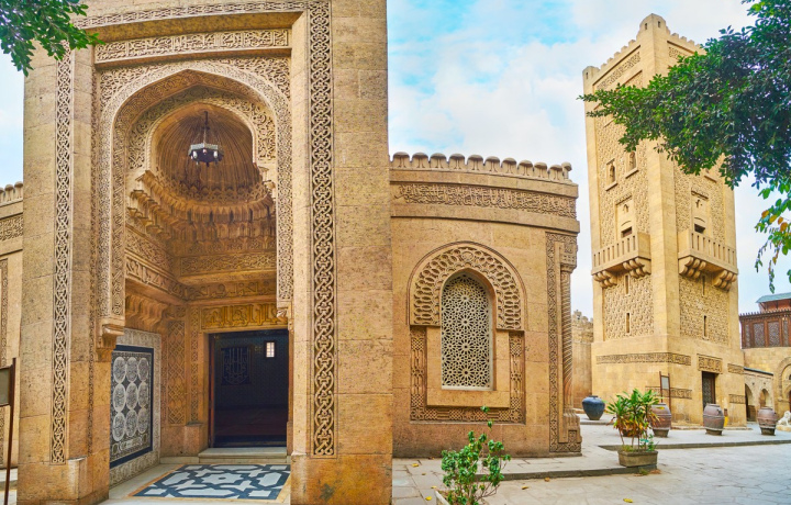 Дворец Маниал. Расположен на острове Рода, на реке Нил. Его стиль особенный: он сочетает в себе европейский модерн и рококо, а также традиционные стили исламской архитектуры, включая османский, мавританский и другие. Вы обойдёте его огромную территорию с садами, оцените уникальные интерьеры (и серебряную кровать весом 800 тонн!) и узнаете больше о принце, который его построил.