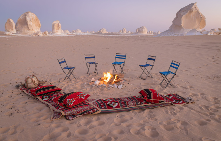 Египет — это не только пирамиды и курорты «всё включено». Мы покажем вам совершенно другую страну — безжизненные просторы Белой пустыни, усеянные меловыми фигурами, созданными ветром. Днём пески ослепляют белизной, а на рассвете и закате окрашиваются в нежно-розовые оттенки — кажется, будто вы оказались на другой планете.
