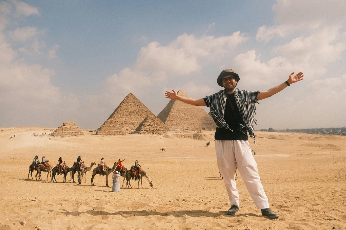 12:30–14:30 — пирамиды Гизы. Окажетесь у подножия пирамиды Хеопса, увидите загадочного Сфинкса и сделаете панорамные фото с тремя пирамидами в ряд