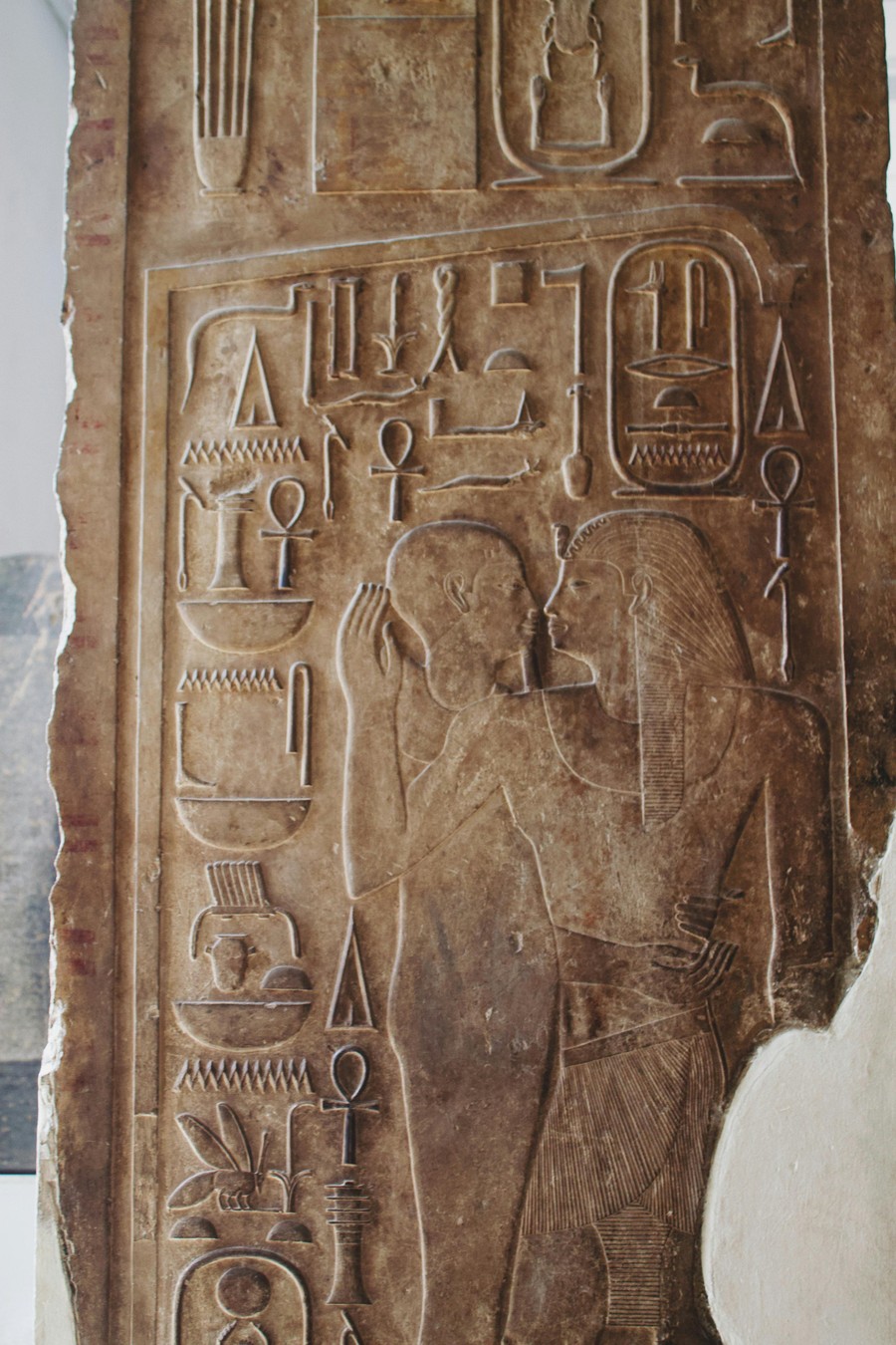 Это хронологическая шкала истории: ступени ведут от божеств Древнего царства до правителей эпохи Птолемеев. Венчает подъём панорамный вид на пирамиды Гизы.