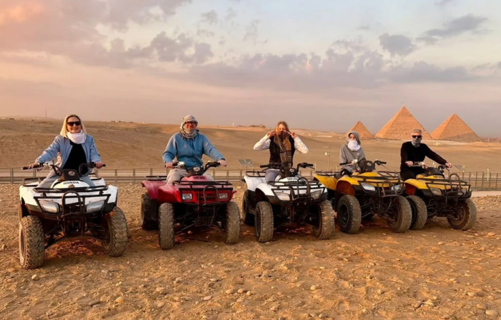 16:30 — начало сафари. Короткий инструктаж — и вы уже за рулём мощного квадроцикла. Отправимся вглубь Сахары, где открываются лучшие панорамные виды на пирамиды Хеопса, Хефрена и Микерина