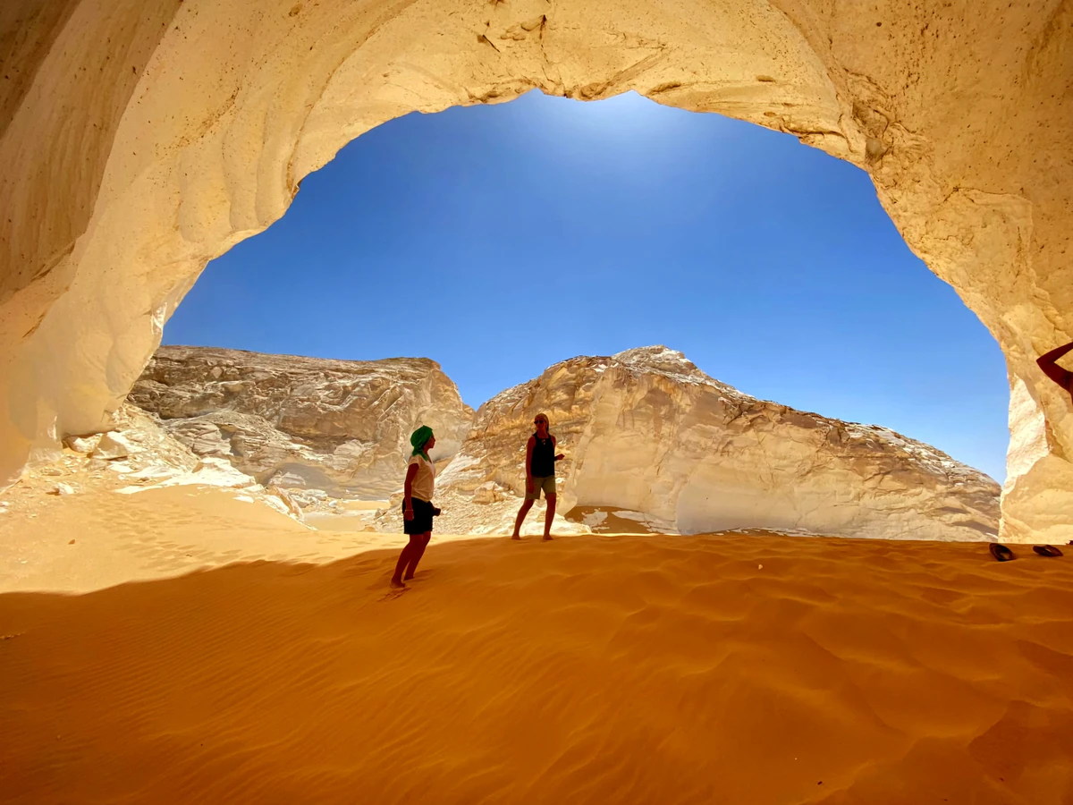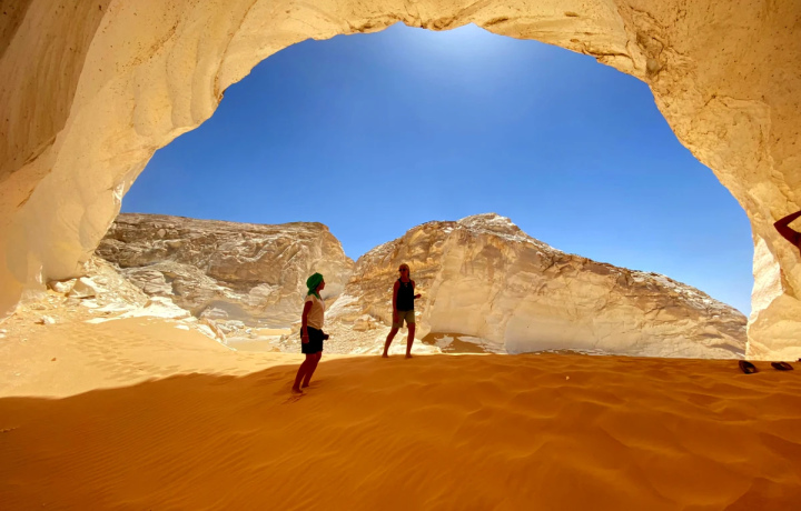В сердце Сахары таятся сюрреалистические миры, кардинально разные и одинаково притягательные. Вы увидите оазис Бахария с пальмами и родниками, Чёрную пустыню со следами вулкана, усыпанную кристаллами гору, долину Агабат и Белую пустыню с причудливыми изваяниями. А после захода солнца останетесь с природой наедине — вы, треск костра и купол из звёзд.