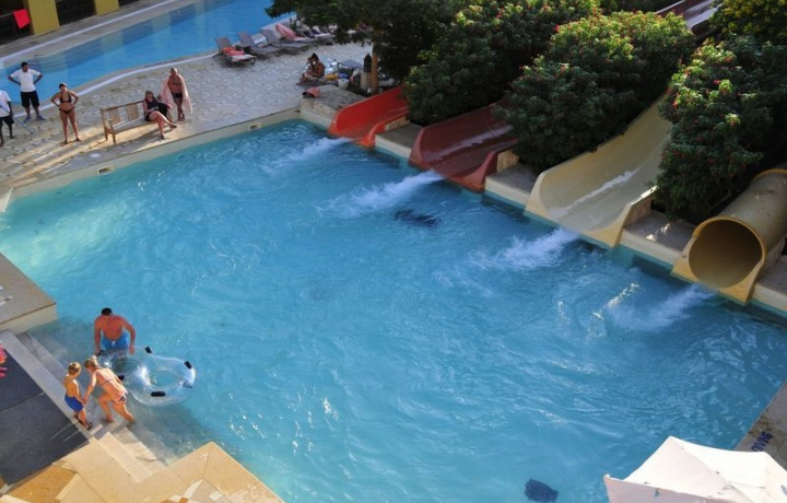 Вас ждут бассейн с искусственными волнами, рафтинг-река, три варианта горки "Цунами", горка "Труба", горка "Чёрная дыра", горка "Воронка" и многие другие.