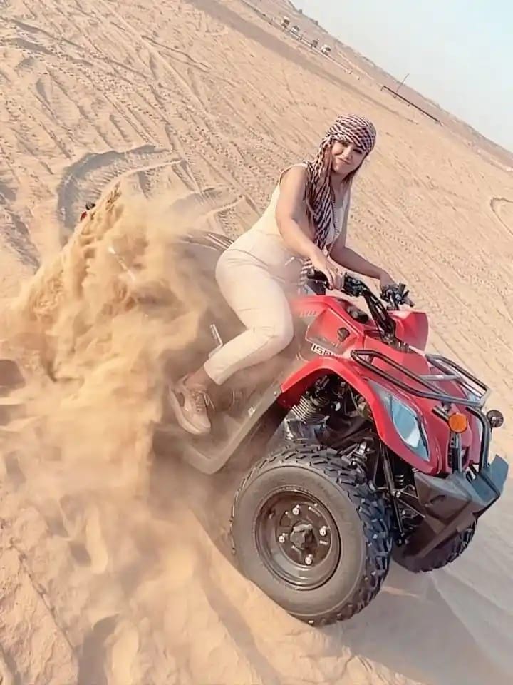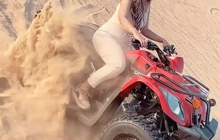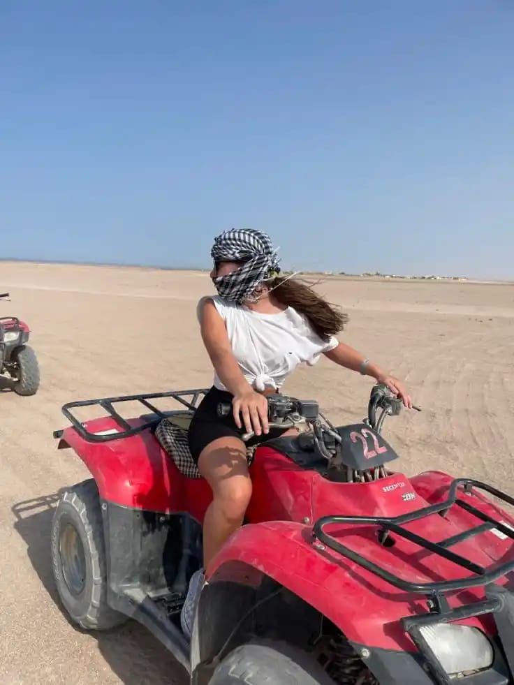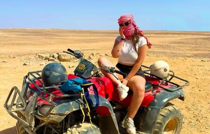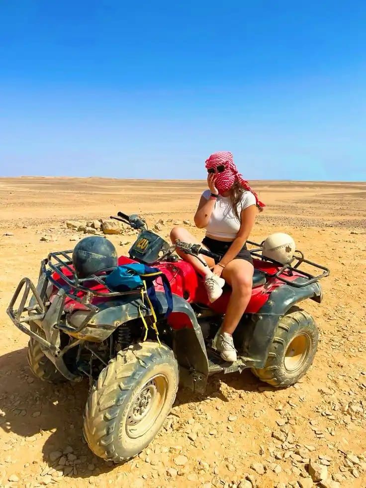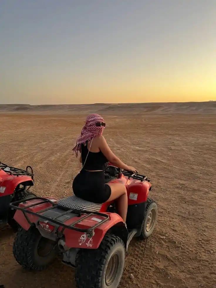 Из вашего отеля мы заберём вас на удобном джипе. Опытные гиды будут сопровождать вас на квадроциклах, проводя через золотые песчаные дюны и даря незабываемые ощущения скорости и приключений в сердце пустыни.