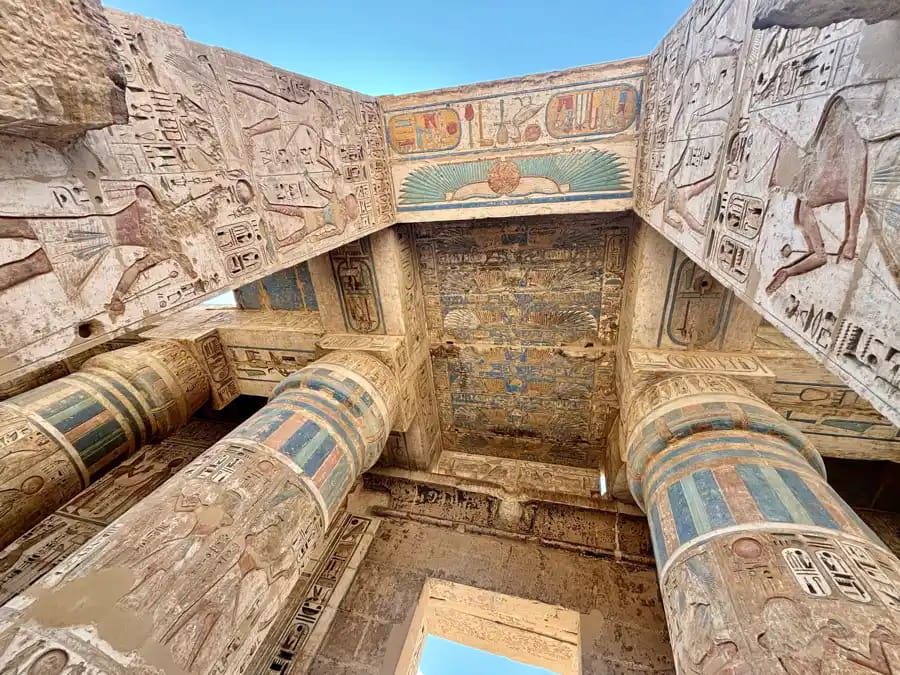 Поездка начинается с посещения Дендеры, что рядом с городом Кена. Место известно своим храмом Богини любви и красоты Хатхор. Этот храм является одним из самых впечатляющих и хорошо сохранных в Египте. Здесь вы сможете увидеть уникальную «родильную комнату», а также изящные стены с изображениями иероглифов и богов, на которых ещё сохранились уникальные краски с древних времён.