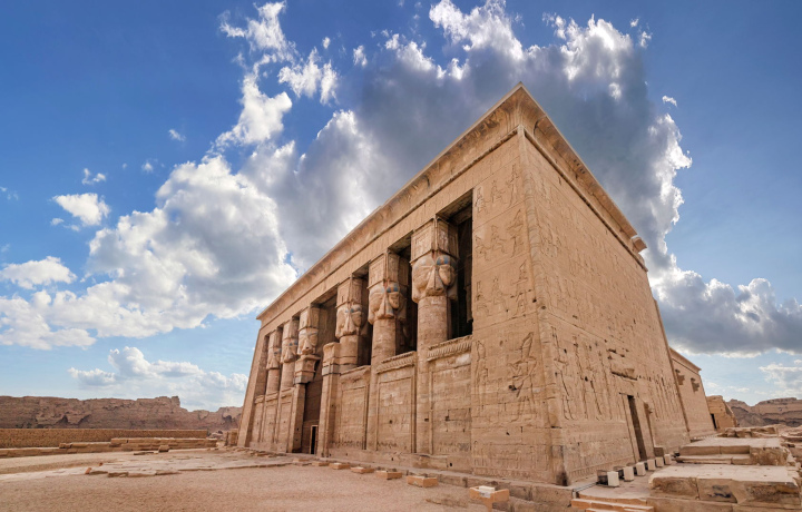 • Храм в Дендере, посвященный богине Хатхор, богине любви и музыки, с уникальными изображениями и хорошо сохранившимися красками.