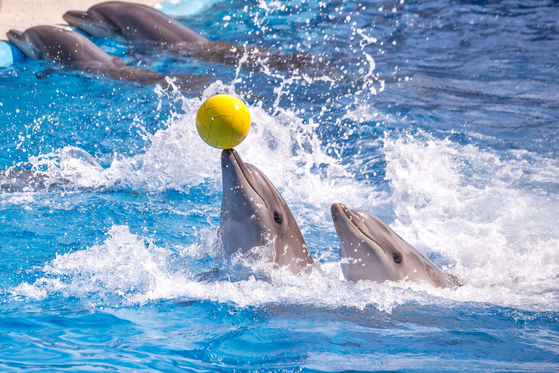 В программе участвуют специально обученные дельфины — настоящие артисты, которые выполняют сложные трюки, прыжки, танцы и взаимодействуют с тренерами. Под руководством опытных дрессировщиков они демонстрируют удивительную синхронность, интеллект и дружелюбие, превращая каждое выступление в яркое и запоминающееся шоу.
