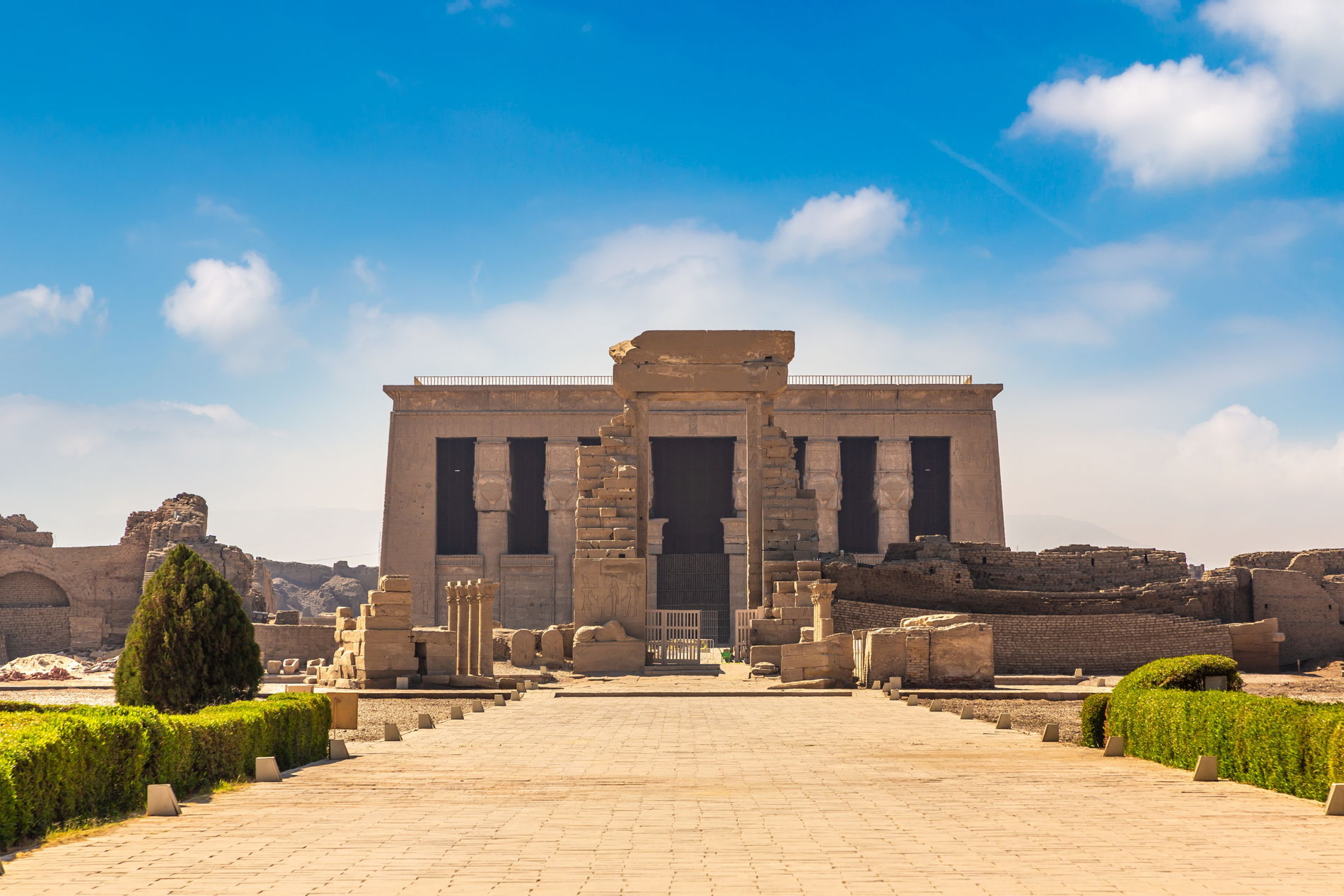 Храм в Дендере посвящён богине любви и радости Хатхор. Его удивительные барельефы и надписи рассказывают о ритуалах, праздниках и тайных знаниях древних жрецов. Это место, где красота и символика сливаются в гармонии.