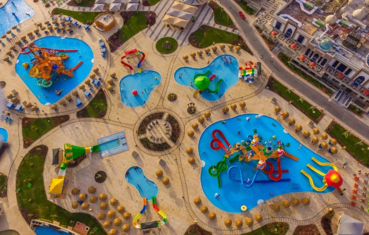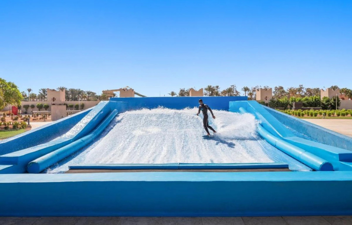 Едем в огромный аквапарк, который находится на территории сразу двух отелей. Здесь — более 30 водных горок, девять бассейнов, тематические аттракционы, искусственная волна для сёрфинга, лаунж-зоны и множество других развлечений на любой вкус и для любого возраста.