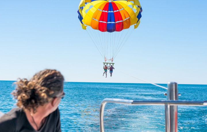 Заранее обсуждали, что нас будет 5 человек, а полетит только двое, остальные трое поедут на катере за доплату. Организатор подтвердила, что купальники в таком случае не стоит брать- купания с катера не предполагается. За нами приехал водитель не очень говорящий по-русски, взял деньги, отвез в бухту, проводил на пляж местной компании, которая занимается водными активностями и парашютами, и ушел, не сказав - что делать дальше, где его искать обратно… в итоге после 10 минут ожидания непонятно чего выяснилось, что на катер нас не возьмут, потому что мест нет, а вопрос про оплаченную за эту услугу деньги не к ним. Мы очень расстроились, потому что специально поехали таким составом - обещали младшему ребенку катер и сами хотели посмотреть, как старшие дети будут летать. В итоге отправили двоих, а сами 40 минут сидели под зонтиком, потому что даже искупаться не могли без купальников. После моих гневных сообщений, появился наш сопровождающий, развел руками и хотя бы объяснил, где будет ждать нас, чтобы отвезти обратно. И да, доплату за катание на катере вернул. Но настроение было испорчено.
