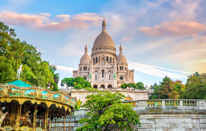 Холм Монмартр венчает белоснежный Сакре-Кер, перед которым раскинулись широкие лестницы и террасы с потрясающим видом на город. С высоты вы увидите Эйфелеву башню, Монпарнас и бесконечное море знаменитых парижских крыш.