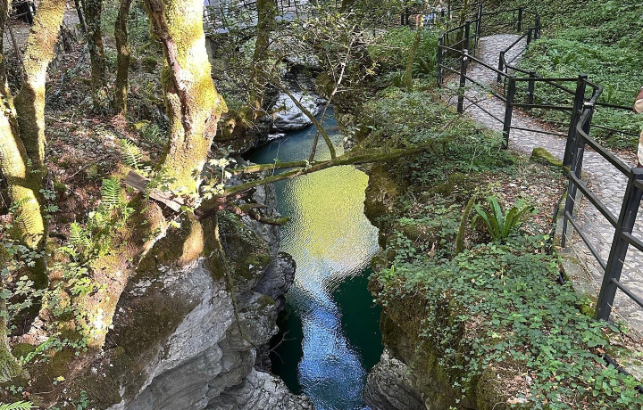 Хороший тур. Каньоны просто сказочные, мало времени только было на них как-то ( на лодочке обязательно покататься надо). Пещеры тоже завораживают. Прохладно там. Горячие источники: в водопад только в тапочках, иначе ожог получите. Можно было еще заехать на Уреки, но все решили остаться дольше на горячих источниках. Сладкое угощение, чай, вино и чача были в изобилии. Фрукты были бесподобные.