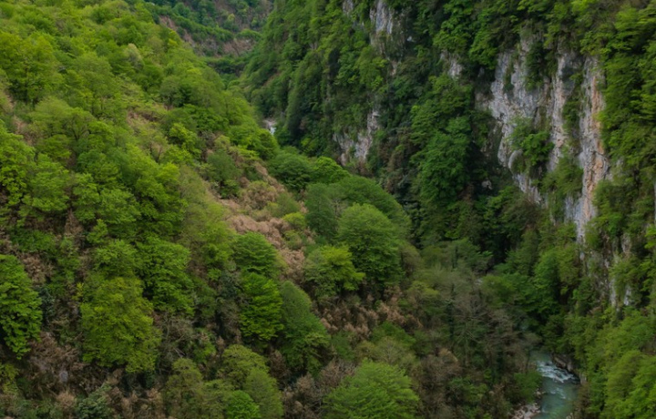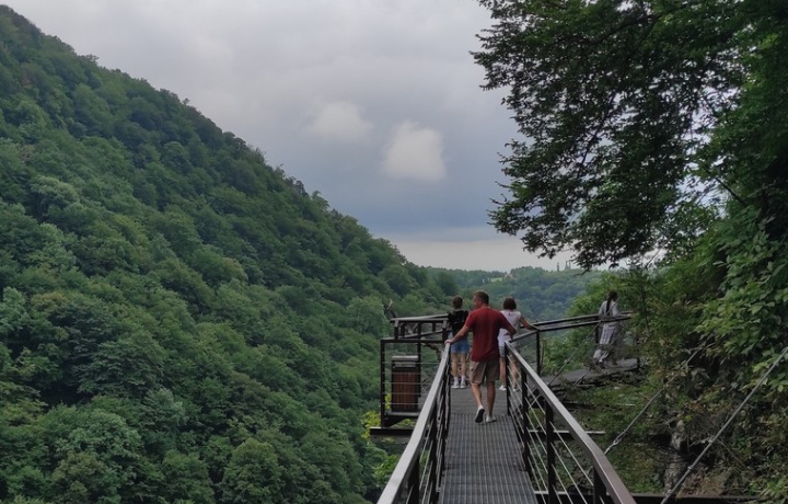 Каньон Мартвили. Мы пройдём по мостикам, заглянем в зелёную бездну и прокатимся на лодке по каньону, где вода такая прозрачная, что кажется — лодка парит в воздухе.