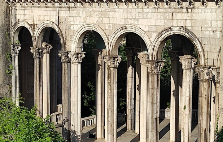 Заброшенный санаторий «Медея» в Цхалтубо. Колонны, мраморные лестницы и пустые залы дышат временем, будто здесь всё замерло на полувздохе.