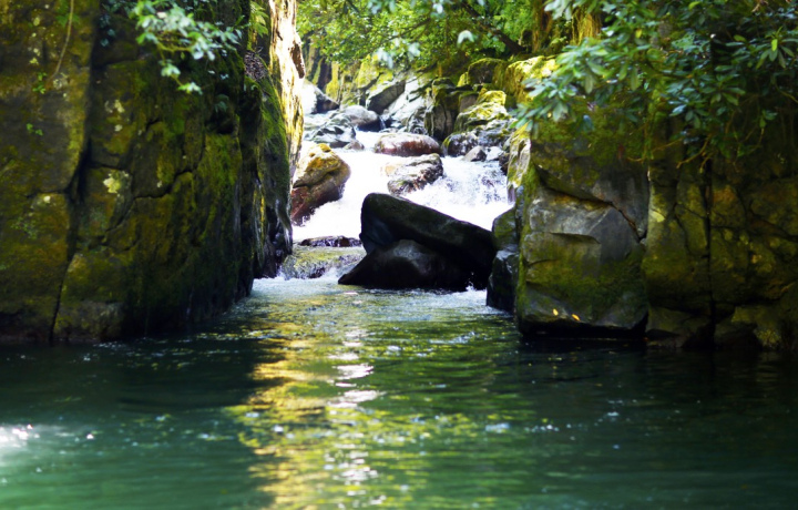 А потом мы окажемся в совершенно другом мире. Вы увидите густые леса, водопад, подвесной мост и ручьи — будто в джунглях. Выберете сами, как продолжить прогулку: