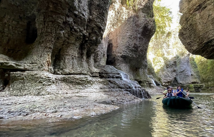 11:30–13:00 — каньон Мартвили. Живописное ущелье, сформированное водой и ветром за тысячи лет. Здесь когда-то купались монахи Мартвильского монастыря, а дворяне Дадиани устраивали прогулки. Вы пройдёте по тропам, услышите шум водопадов и пение птиц. А если захотите, прокатитесь на лодке по изумрудной реке