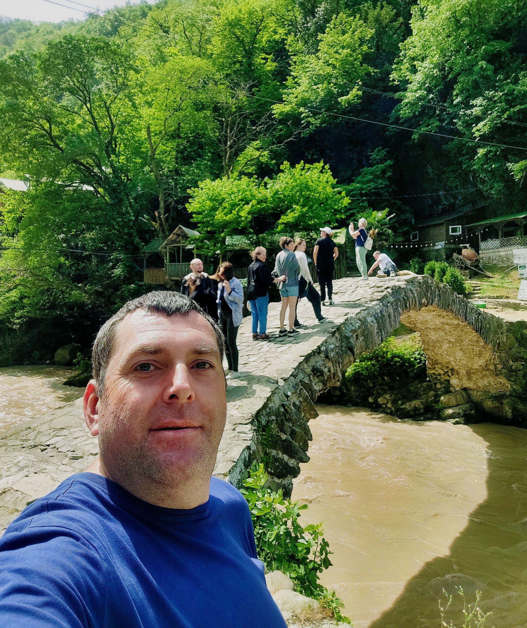 Погода в день поездки разбушевалась, но Каха предлагал решения в моменте. Договорились выехать чуть позже исходного времени, к счастью, гроза закончилась и мы не пожалели, что поехали. Каха провел для нас чудесную экскурсию! Он очень тактичный и приятный собеседник. Мы были на водопадах, видели арочные и подвесные мосты, наслаждались невероятными видами, узнавали об организации быта в горах. Каха грамотно построил маршрут, почти на всех локациях были без толпы других туристов. Гвоздь программы - застолье с национальными блюдами, танцами, песнями. Были в большом зале с другими группами, сидели своей компанией, очень комфортно. Впечатления от выступлений самые положительные, талантливая и дружная семья. В этот день отмечала день рождения, хозяин и его жена поздравили при всех, вручили бутылку вина, очень яркое и приятное поздравление получилось. Спасибо большое, Каха, за такое путешествие!