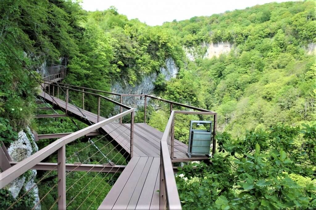 Завтрак в гестхаусе. Путь продолжаем в сторону бальнеологического курорта Цхалтубо, где мы посетим пещеру Прометея, туристический маршрут которой — 1400 м. Нашим туристам предоставляется возможность совершить прогулку на лодке по реке внутри пещеры. Наша следующая экскурсия пройдет в каньоне Окаце, глубина которого около 100 метров. До середины каньона проложена 750 метровая подвесная металлическая дорога, находящаяся на высоте почти 100 метров над ущельем Окаце и заканчивающаяся 20 метровой смотровой площадкой. Заканчивается экскурсия в деревне Кинчха, где мы увидим красивейший водопад висатой 92м. Возвращение в гестхаус, свободное время и ночлег.