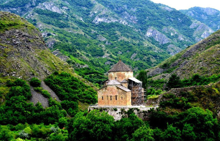Следующая локация — Атенское ущелье с отличным ландшафтом и историей, храм Усыпения Богоматери (VII век) интересен по многим причинам: это тетраконх-конструкция, пришедшая из Византии, такого стиля храмы в постсоветском пространстве можно увидеть только на территории Грузии и в Армении.