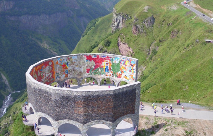 Остановимся также у реки Арагви, побываем на горнолыжном курорте Гудаури, остановка у Арки дружбы русского и грунского народа и последняя остановка в городе Степанцминда или же, как все называют, город Казбег! С Казбеги поездка на специальных внедорожниках к храму Святой Троицы, который находится на высоте 2130 метров.