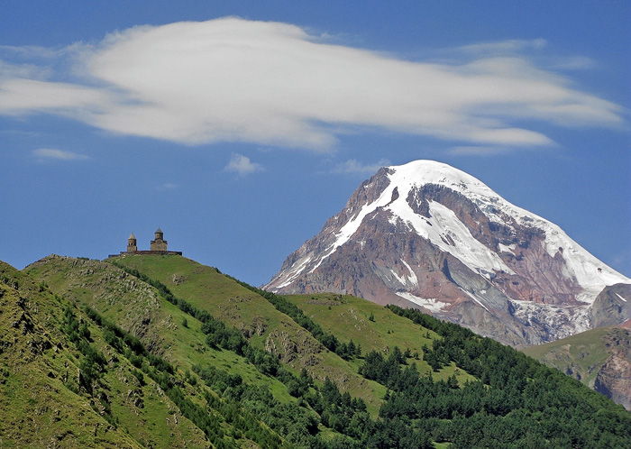 Затем мы прибываем в Степанцминду (Казбеги), откуда поднимаемся к Гергетскому Троицкому собору. В ясную погоду отсюда открывается вид на Казбек — одну из самых высоких и впечатляющих вершин Кавказа. Если позволит световой день, будет время на кофе-паузу.