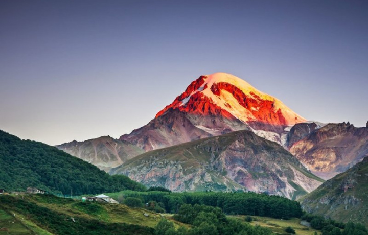 Вы увидите необыкновенную красоту легендарного «поднебесного» старинного храма Святой Троицы Гергети. И не только полюбуетесь им снизу, но и по желанию подниметесь на джипах на смотровую площадку на высоте 2170 метров. Казбек ниже Эльбруса, но, тем не менее, также является пятитысячником — его высота составляет 5047 метров над уровнем моря.