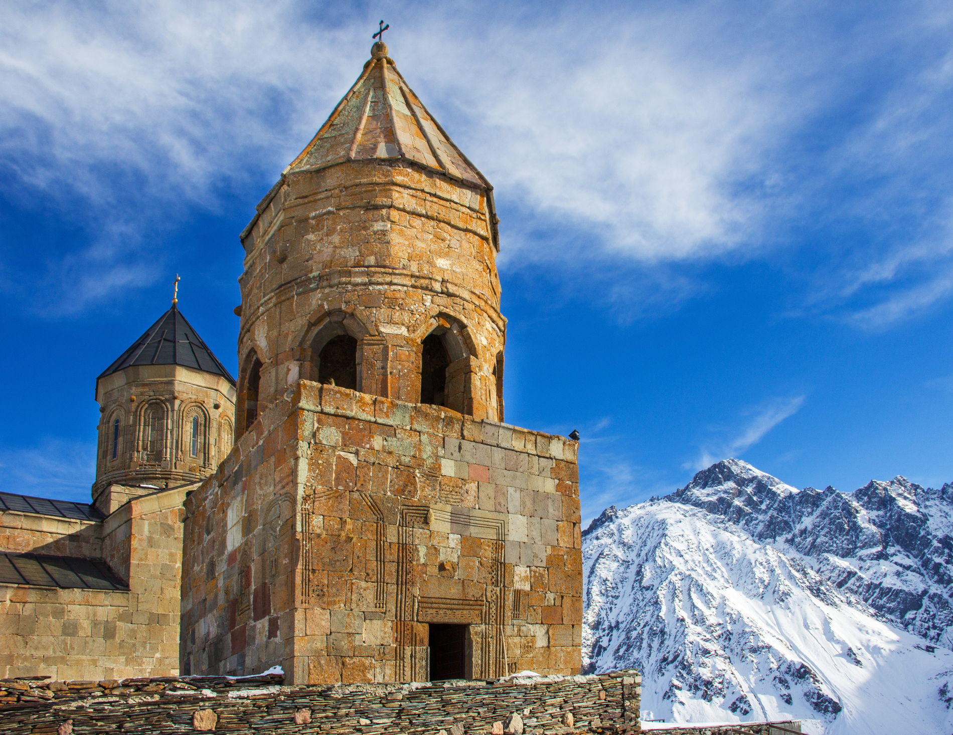 • Степанцминда и Гергетская церковь (Цминда Самеба) — вершина экскурсии: подъем на внедорожниках к культовому монастырю, который на фоне Казбека выглядит как картина, нарисованная природой.