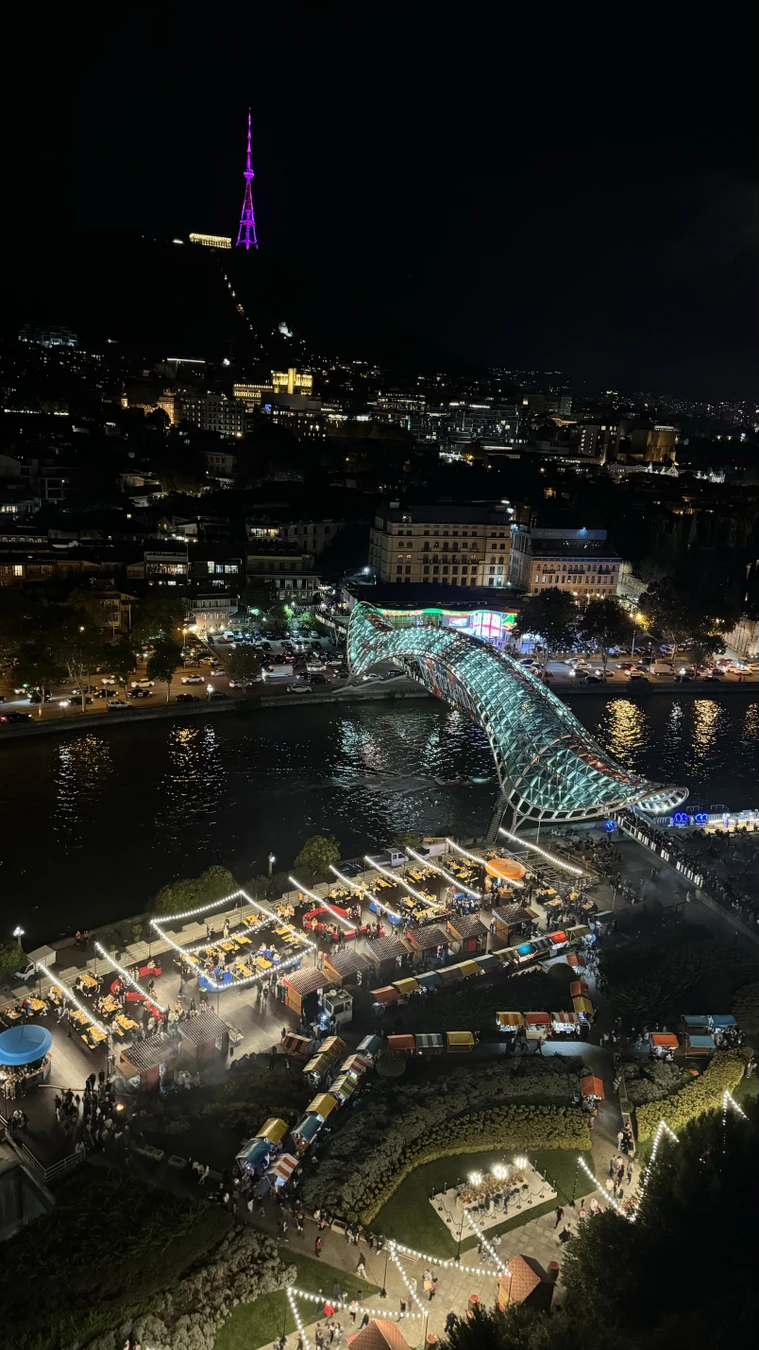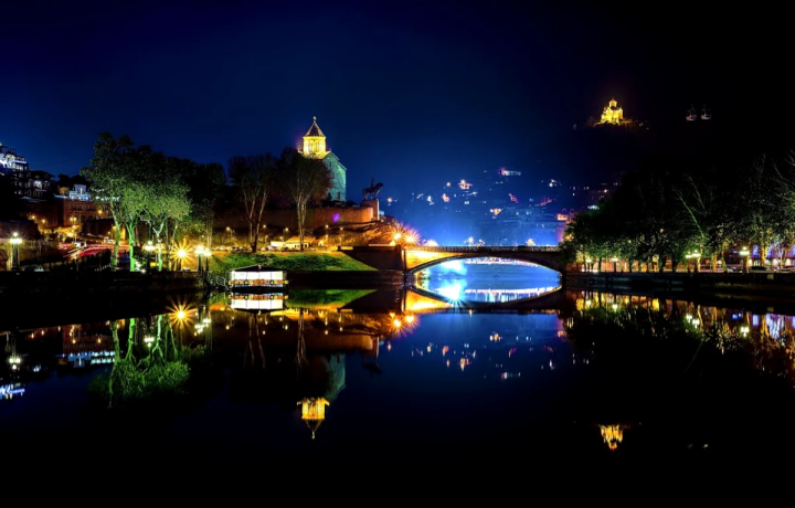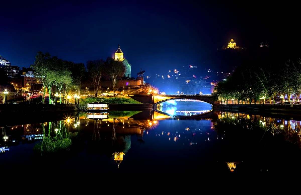 Столетние платаны встретят вас у набережной Куры, отражаясь в воде вместе с крепостью Нарикала и Мостом мира в сиянии тысячи огней.