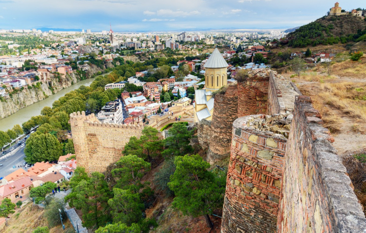 Метехский храм Божьей Матери возвышается на одноимённой скале. Собор возвели в XII веке. В исламский период истории Грузии внутри размещались пороховые склады, собор неоднократно разрушался. Только после христианского возрождения в XVII веке он приобрёл современные черты. Классическая крестово-купольная архитектура с четырьмя колоннами и прекрасно сохранившийся портик Золотого Века делают этот храм национальным достоянием Грузии.