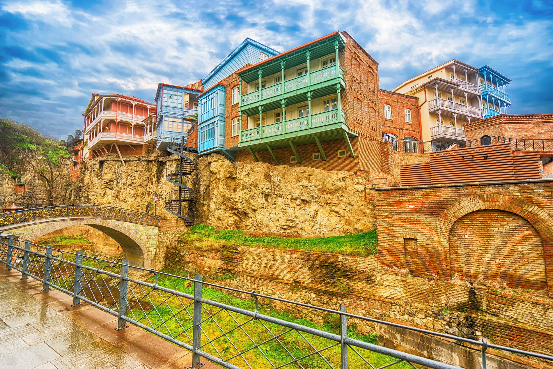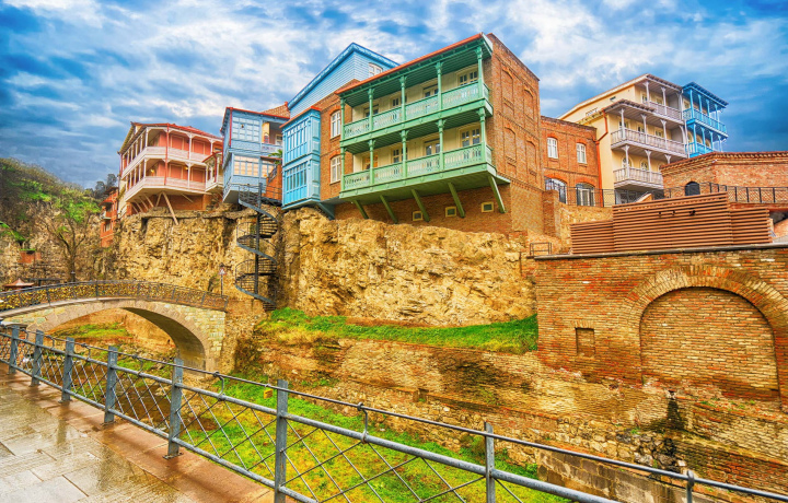 Перейдем через мост Мира, а в парке Рике, который своими очертаниями напоминает карту Грузии, сядем на канатку и поднимемся к крепости Нарикала. Полюбовавшись панорамой города, спустимся к водопаду в центре города и пройдемся по району Серных бань.