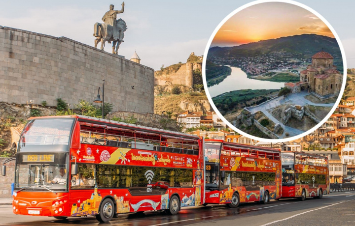 Приглашаем вас в 4-часовое путешествие по современной и древней столицам Грузии. Проходите на борт нашего двухэтажного автобуса-кабриолета.