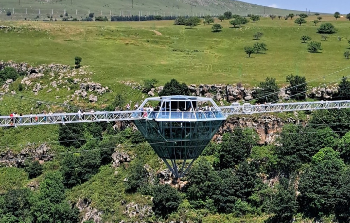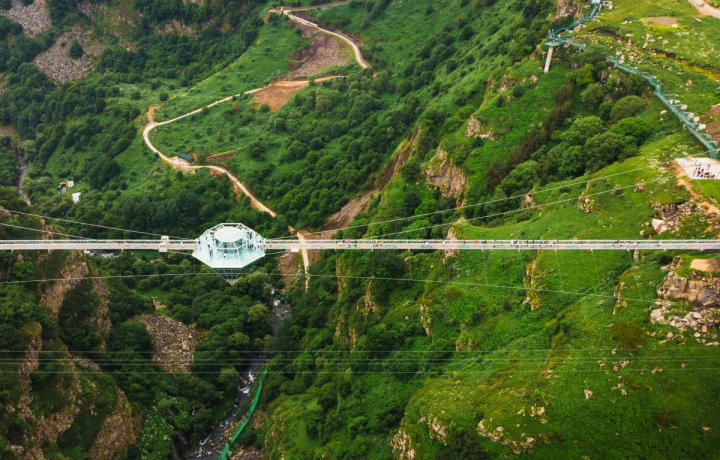 Прогуляться по стеклянному мосту над причудливыми изгибами долины.