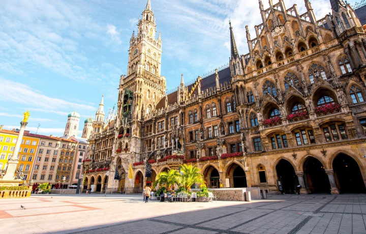 Экскурсия начнётся на главной площади Мюнхена- Мариенплац, которая в течении столетий выполняла функции рыночной площади Мюнхена. Главным архитектурным акцентом площади Мариенплац является Новая Ратуша, мы знакомимся с богатым внутренним и внешним убранством здания, посещаем один из внутренних двориков.