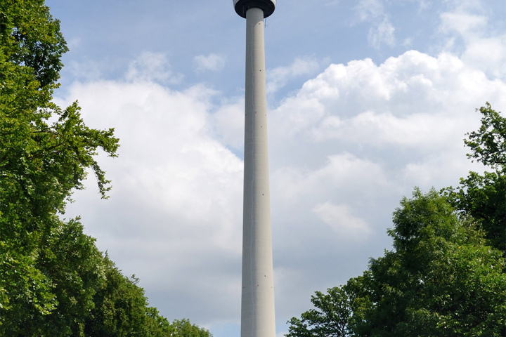 В 1956 году в полуразрушенном послевоенном Штутгарте появилась первая в мире железобетонная телебашня высотой 217 метров. Её поставили на юго-восточной окраине города, на холме Бопсер высотой 483 метра над уровнем моря. Автор проекта Фриц Леонхардт отказался от идеи возводить постройку с внешними опорами, уродующими пейзаж.