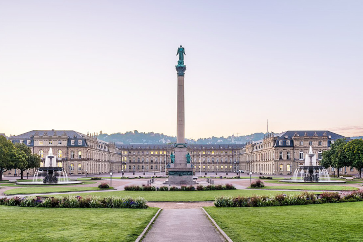 Schloßplatz — исторический центр Штутгарта, ансамбль которого сложился к 60-м годам XIX века. Доминанта Замковой площади — Новый дворец 1807 года постройки, резиденция вюртембергских королей. Его боковые корпуса, словно гигантские крылья, обнимают площадь с севера и юга. До середины XIX столетия перед дворцом располагался ничем не примечательный военный плац.