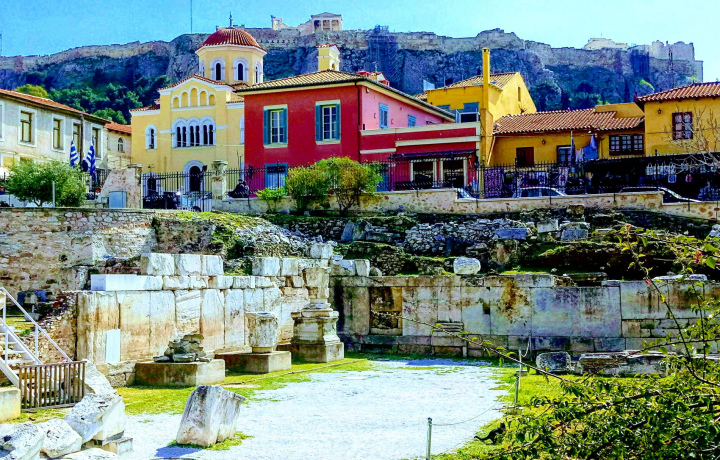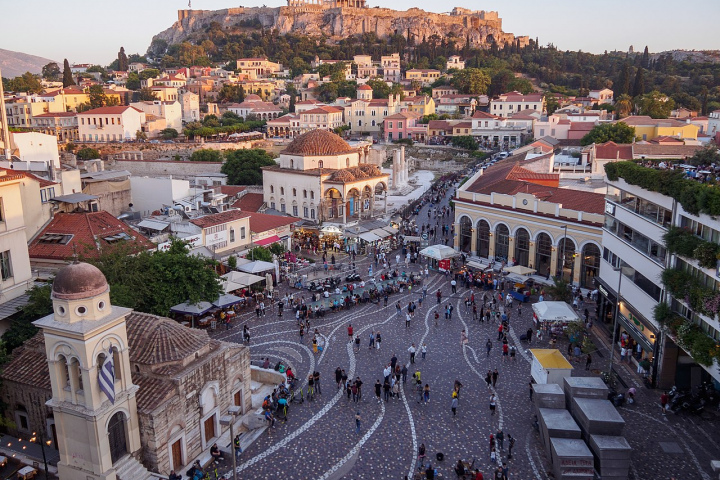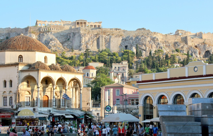 С северной стороны к Акрополю примыкает старейший район Афин — Монастираки. Во времена Османской империи это был центр города с рынком, мечетями, административными зданиями. Сегодня Монастираки — торговый район с самым известным в Греции блошиным рынком. От площади разбегаются улочки с многочисленными лавочками ремесленников, магазинами и ресторанами.